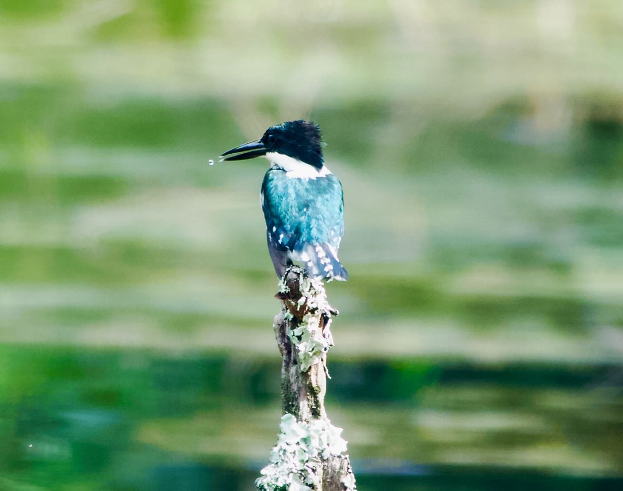 We were sad to leave Rancho Naturalista as we knew there were many more birds we could have seen but it was time to move on and we had a 4.5 hr drive to Arenal but with plans to stop at a couple of places along the way. Our first stop was just a quick detour into Finca Tres Esquis or Farm and Forest. I had seen ebird reports from there and knew that Purple Fruitcrows was on the list of expected birds so we pulled in as it was right off the highway. It was a large property and clearly we would not have time to cover it all but we drove in a way and stopped near a look out and pond. We saw our first Green Kingfisher and Least Grebes, both not lifers and then from the tower we saw our lifer Black Hawk Eagle.