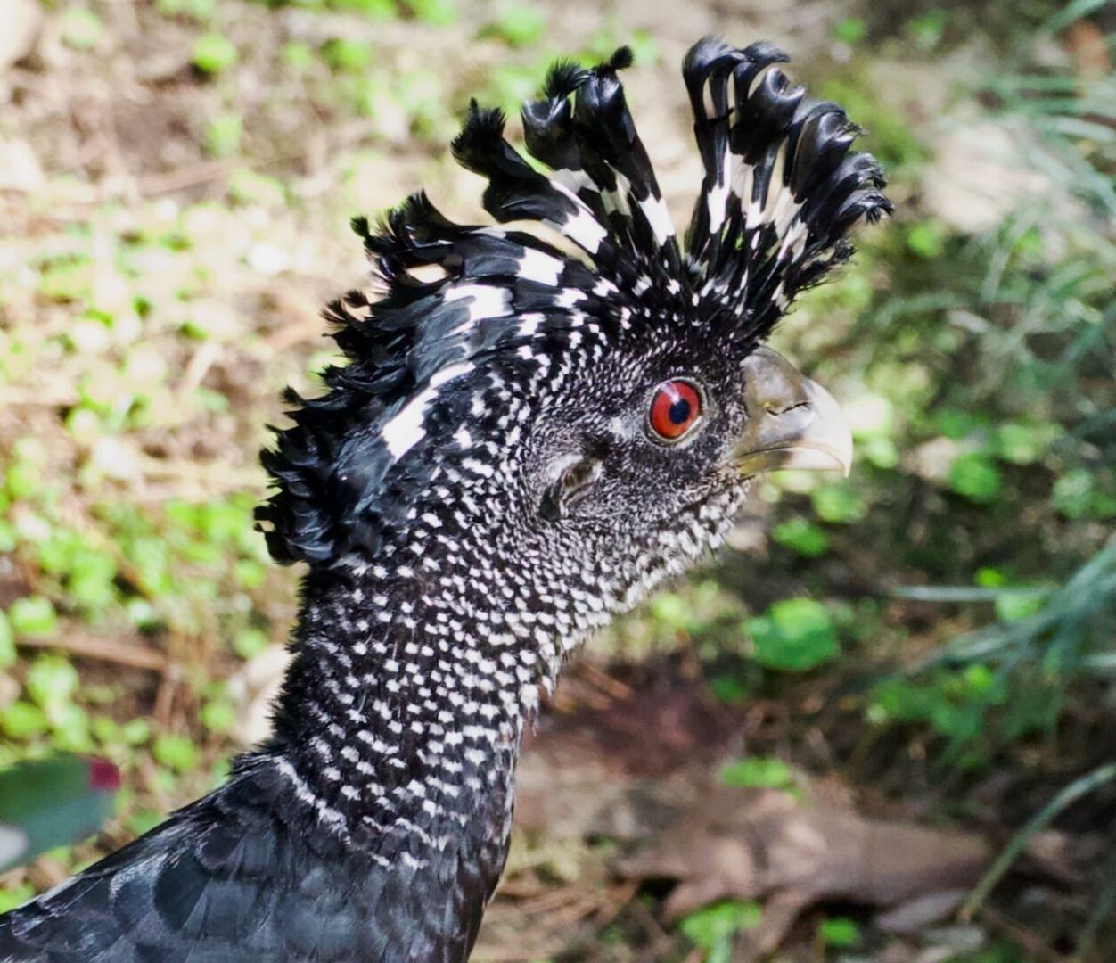 We were up early to meet our guide Jaime (Hymen) and spent a few minutes at the feeders while we discussed what birds we still needed to find. Jaime seemed confident he could find some new species for us so we headed down the lodge road. It was very steep and I was thinking about having to climb back up but Jaime kept going down. We saw a male Great Curassow that is quite different looking from the female. It was displaying with its grunts.