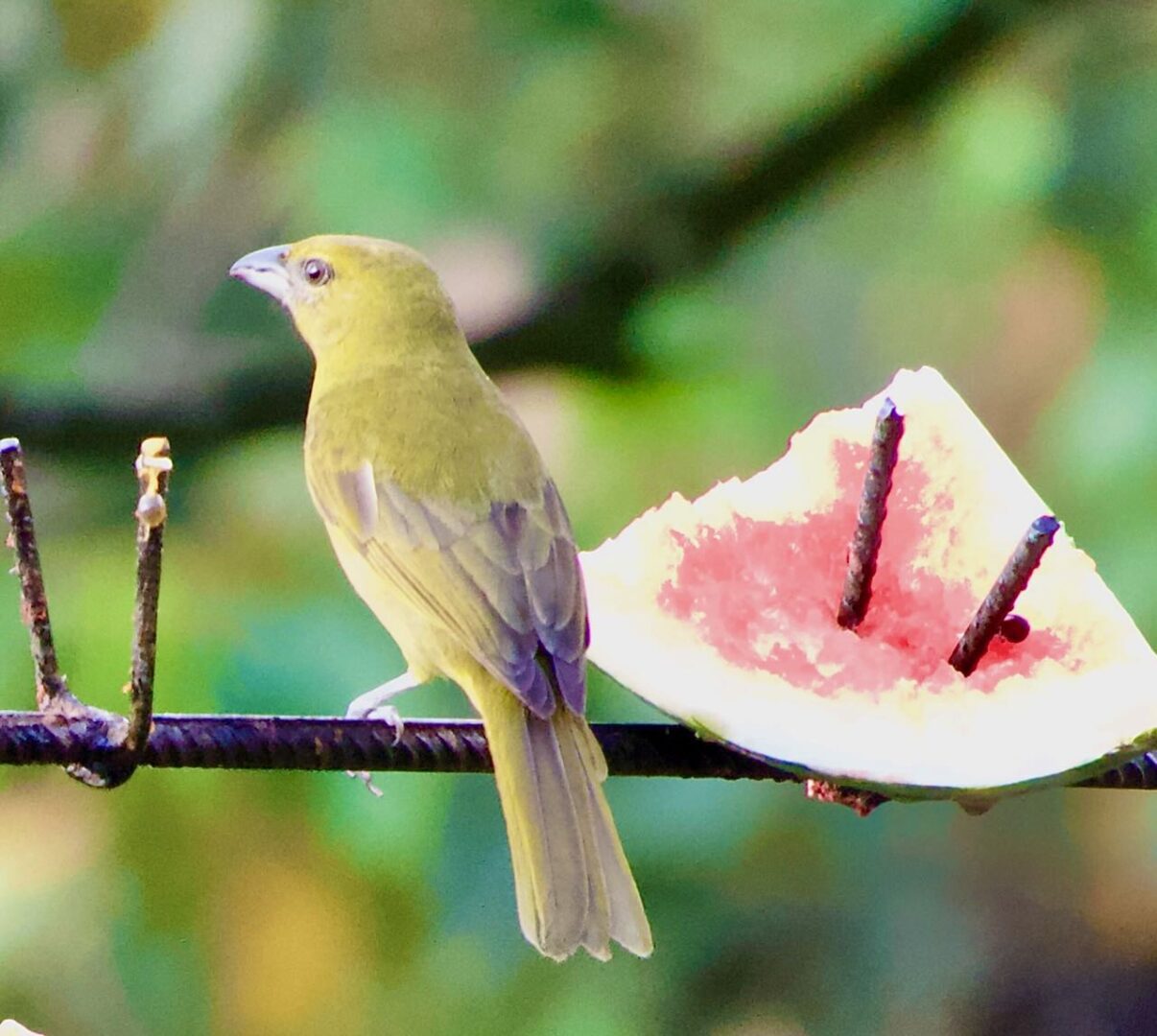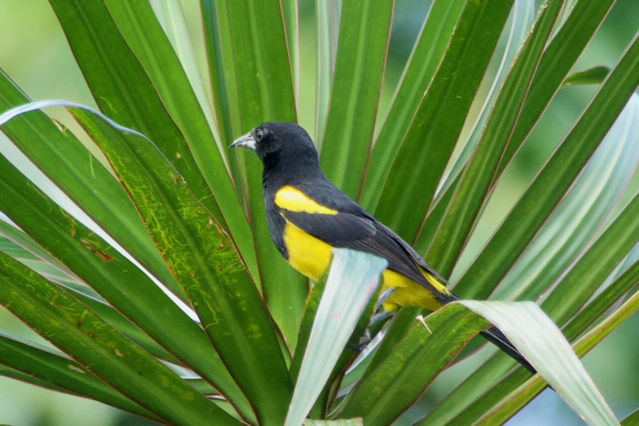 We chose to spend the afternoon sitting out on our patio with beers and computers trying to catch up. Jerry is behind by 7 checklists and there are birds we do not even know we have seen. I’m trying to make notes for the blog and cannot even add names of birds and I am putting in checklists that have some of the birds but not all of them. While we are sitting there Jerry sees a bird that seems to be different. At first I think it is the Black and Yellow Tanager but Jerry is sure it is something else and starts taking pictures. It turns out to be another lifer, Black-cowled Oriole.