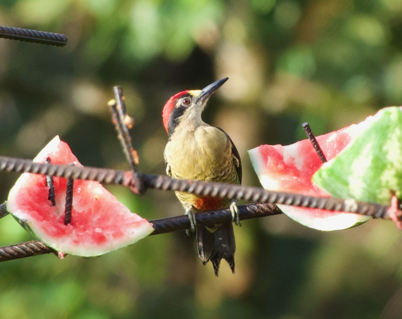 While we had a cold beer on our patio we added a Violet-headed Hummingbird and then headed out to the deck with feeders to watch all these colourful birds coming into feed. We added Black-cheeked Woodpecker, Carmiol’s Tanager, and Red-lored Amazon as well as great looks at lots of Honeycreepers and Tanager species.