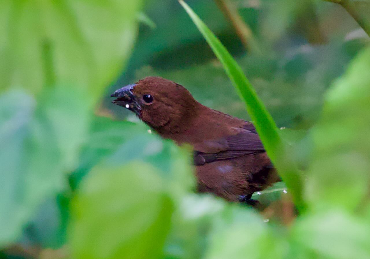 After dinner we headed out to walk the property knowing that a few owl species are regularly seen and heard. I was going from notes on ebird reports that suggested we look on the other side of the property so we crossed the swinging bridge and checked out the gardens as the light left. We found a Blue-black Grosbeak just before dark although the female was neither blue or black. We continued on through the gardens listening intently for owl sounds but came up empty.