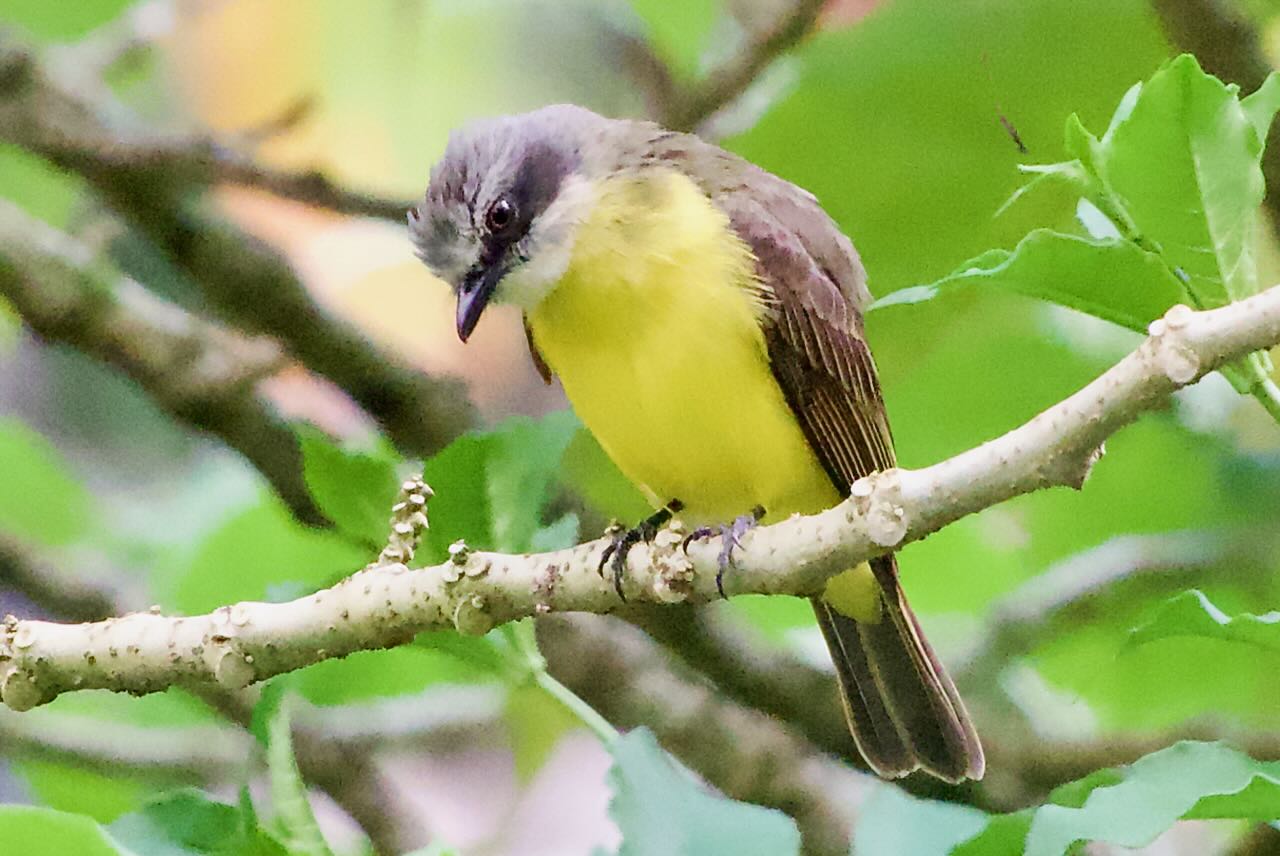 We slowly walked back toward the security booth listening and looking for birds and added a Slaty-tailed Trogon, a Black-faced Grosbeak, and had great views and interactions with some Collared Acararis.