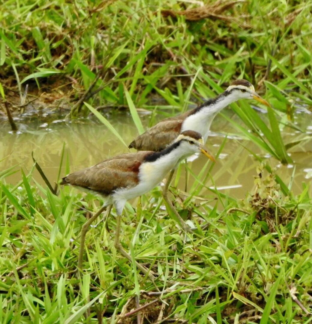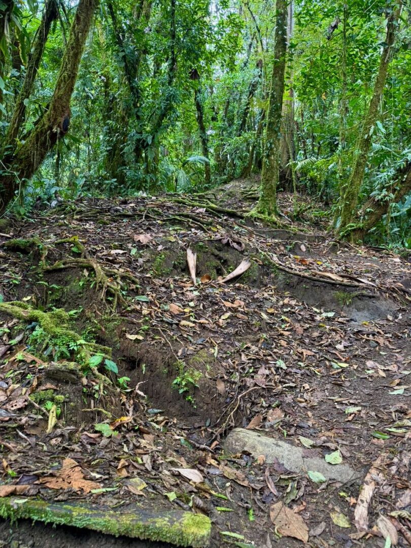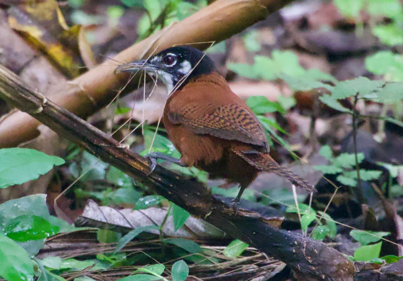 After breakfast we had decided to do the furthest and longest trails around the lodge and headed out with water and snacks. Over the next 5 hours we walked all the different trails seeing mostly birds we had already seen but also tracking down birds we had only heard. Black-headed Nightingale-Thrush was one. It kept singing, we kept moving to get closer, it would stop, we would search with our bins, then move away, it would start singing. I went back and forth along the path determined to find it. I was looking at eye-level height but also started looking lower and suddenly there it was on a rock in a clearing. We had lovely views of it and Jerry took some nice pictures. We were both pumped from sticking it out and finding it. It is what we like most about birding.