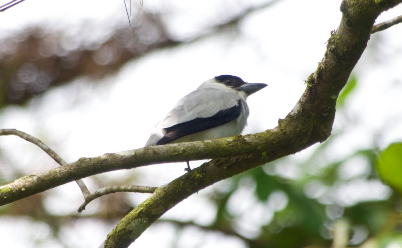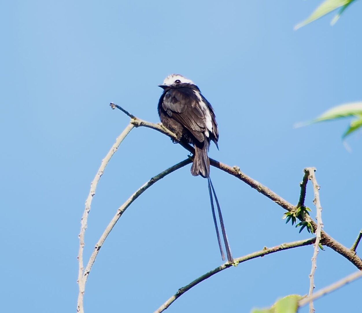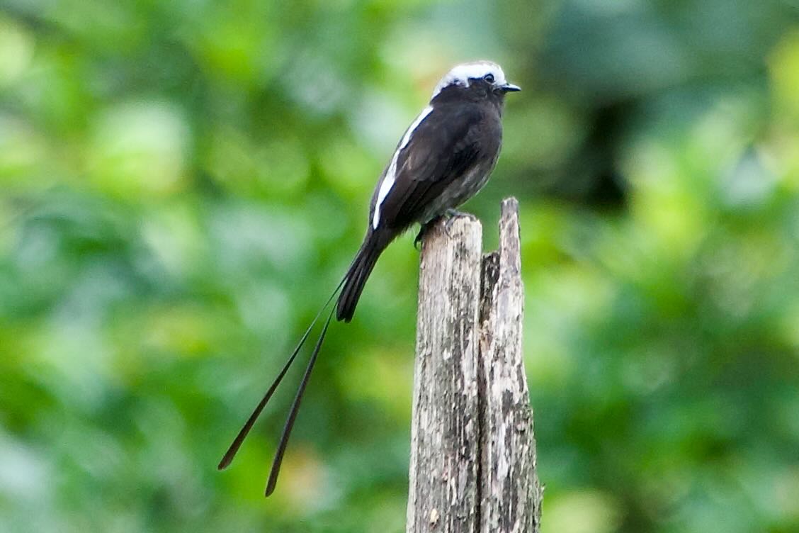 I glanced down the path at one point and saw a different shape land in a tree – I got my bins on it and recognized it as new but not sure what it was. It had long thin tail feathers and was mostly black and white. I tried to get Jerry on the bird to take pictures while also trying to memorize what I was seeing in case it left. Eventually he saw it fly and then managed to take pictures and a man on his balcony was looking at it too and had a bird book so he was flipping through it and then the bird called and Long-tailed Tyrant came up and solved the problem for us.