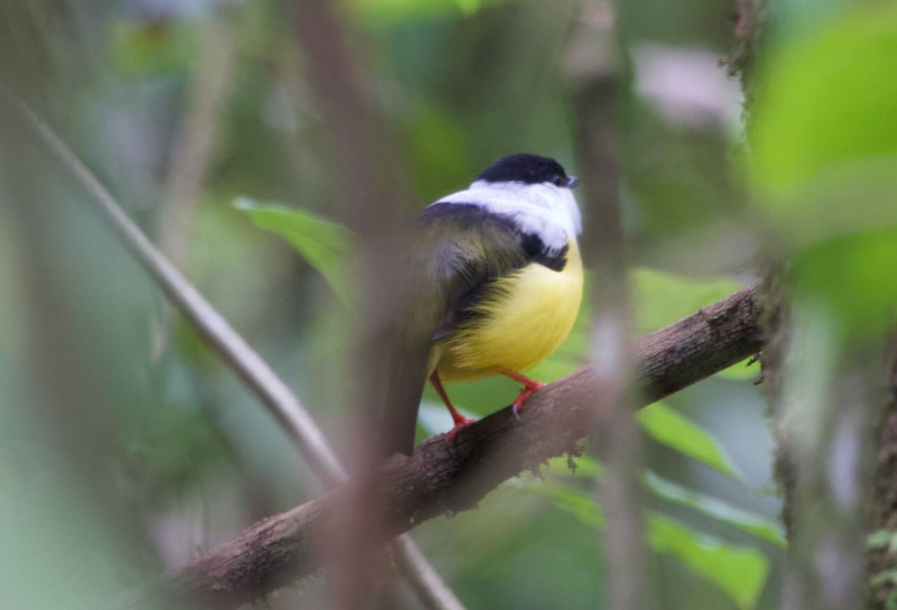 We had quick looks at a Tropical Mockingbird but no pictures of it as it flew away. We walked some more trails and saw 2 more sloths. We then had help finding a Black-and-white-Owl that we helped others see, saw yet another Jacamar! and showed that bird to others on the paths. We heard two new lifers, Fasciated Antshrike and an Ochre-bellied Flycatcher. Again, we hoped to be able to see these birds somewhere else. Another couple showed us a 4th sloth, again high up. We then had White-collared Manakins buzzing and squeaking around us as Jerry tried to get pictures when they briefly stopped.