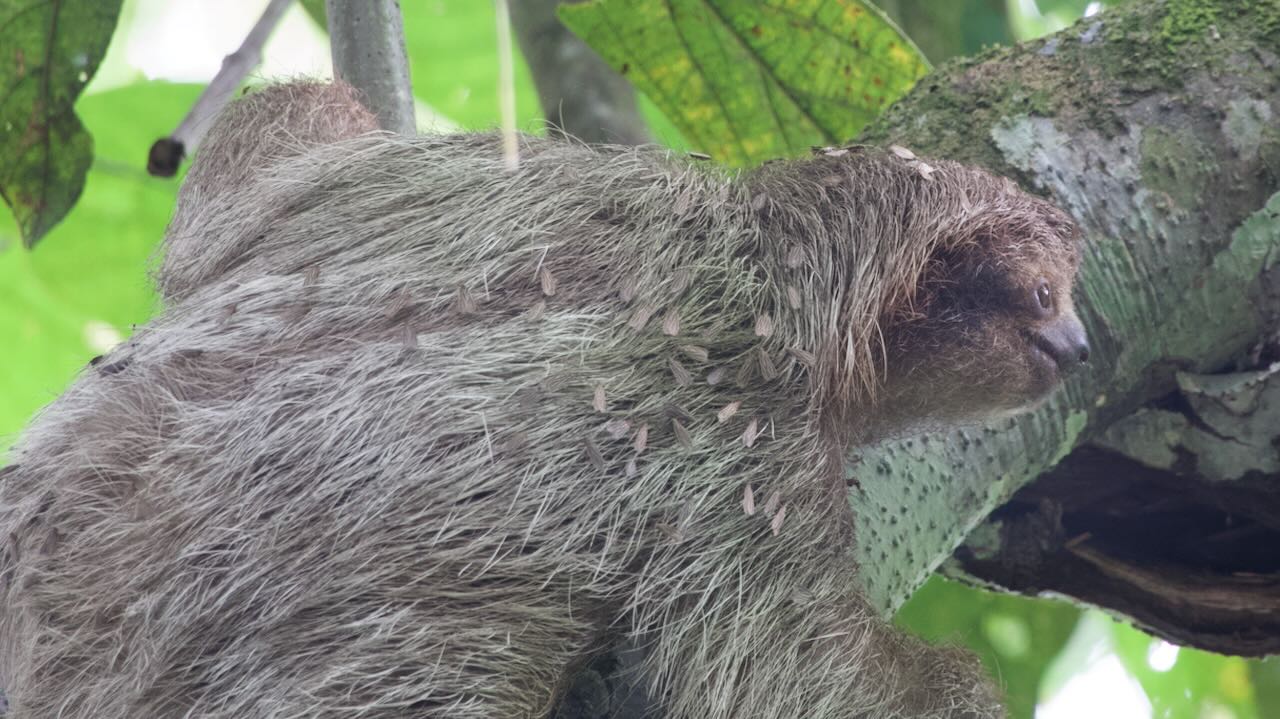 We decided to check back for one of the birds we missed seeing and in doing so ended up with our best views of a sloth, a juvenile just over a year old was climbing down out of the trees possibly to go to the bathroom which they only do every few days and so we could see him clearly, and all the flies attached to him as well. The loud buzzing noise in the video is cicada bugs that were in full voice at a number of locations. So loud they drowned out the song of birds!