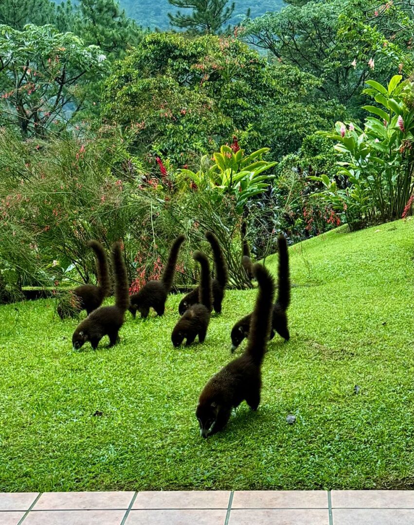 Next morning we woke up to many Coatis walking through our yard searching for grubs in the grass.