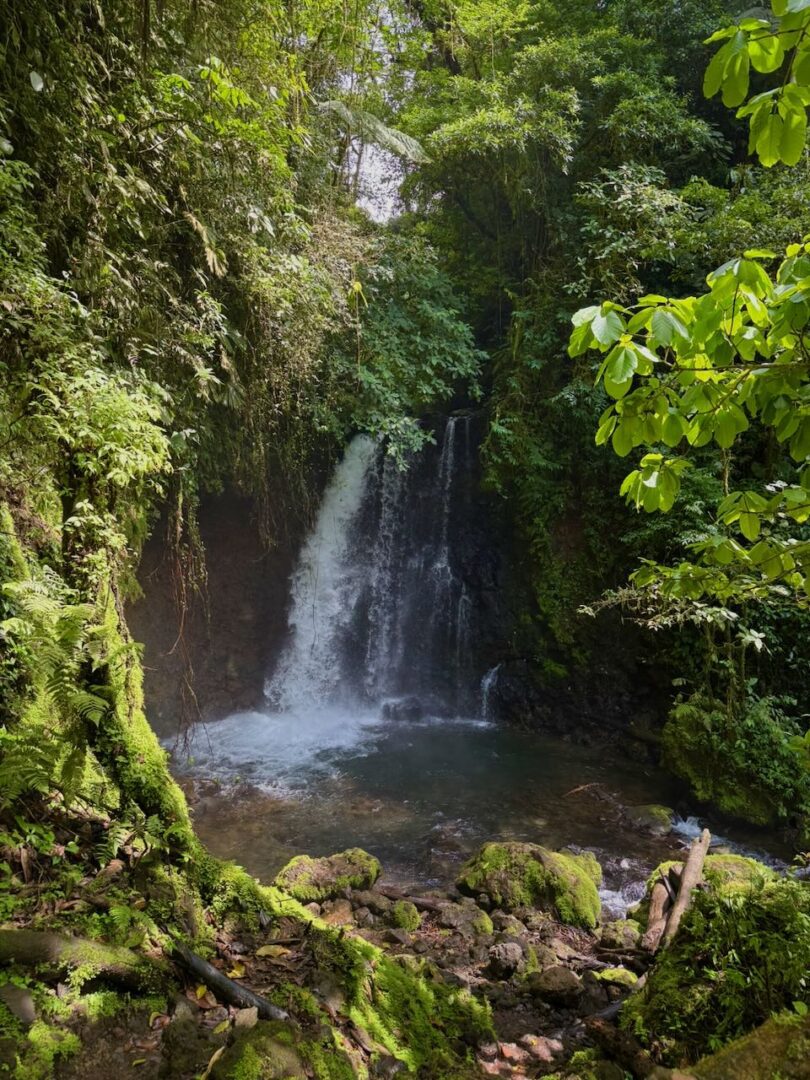 The last lifer of the hike was a Slate-coloured Grosbeak that we listened to for 15 minutes or more but remained elusive off the trail. We walked 10 kms and then did 20 flights of stairs to see the waterfalls on the property. It was nearing 2pm and we were hot and sweaty by the time we made it back to our rooms. A pool break seemed in order so we spent some time in a warm jacuzzi and pool with lovely views of the volcano free from any clouds.