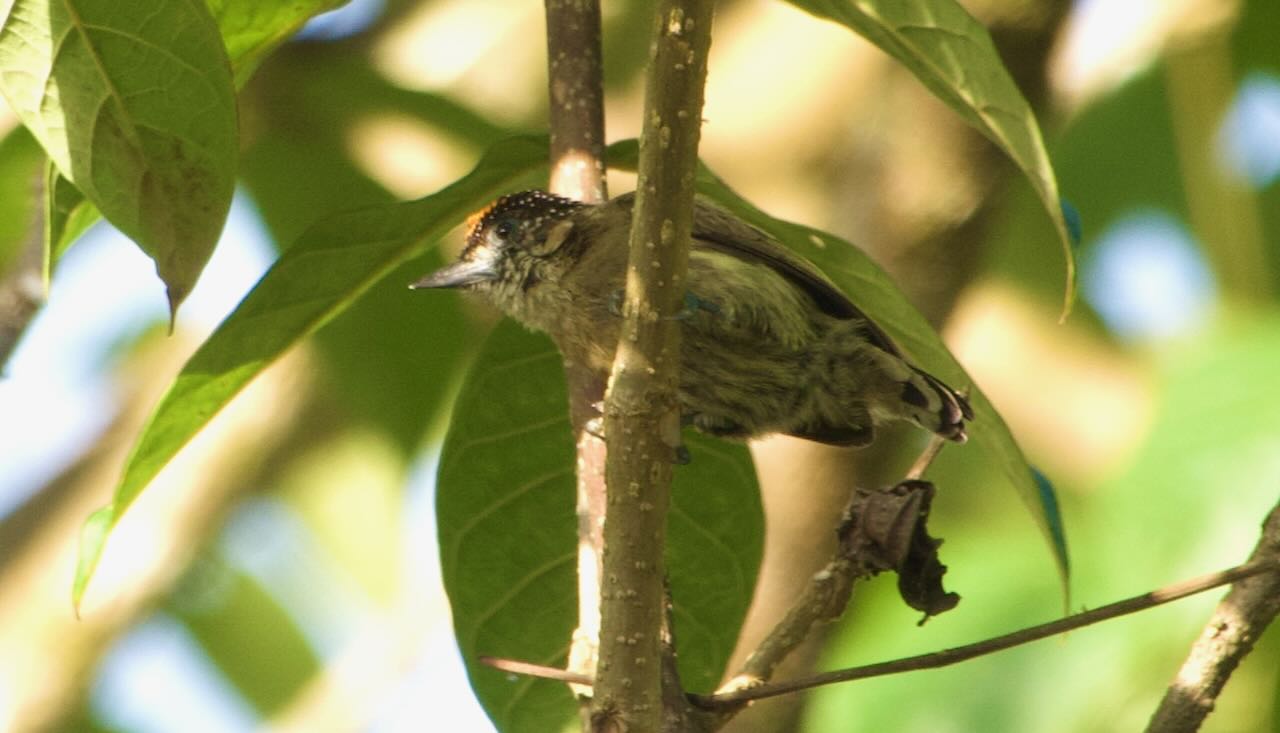 We were super tired though and headed to our room to pack up a bit and fall asleep way too early. In the morning we birded the road out front of the lodge and Jerry got pictures of a small bird that turned out to be an Oliveaceous Piculet – a tiny woodpecker the size of a Nuthatch. Another lifer.