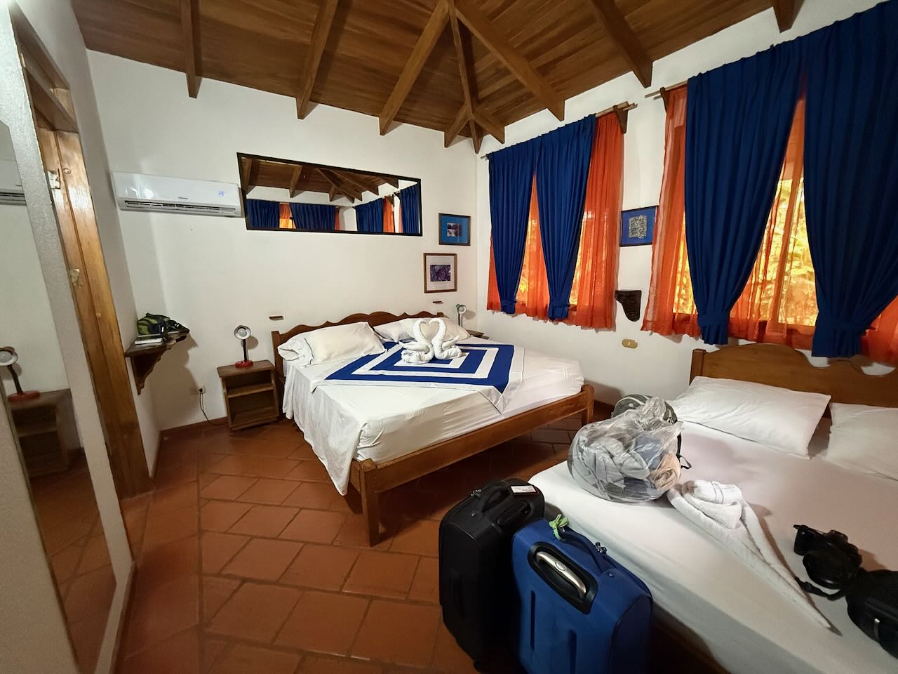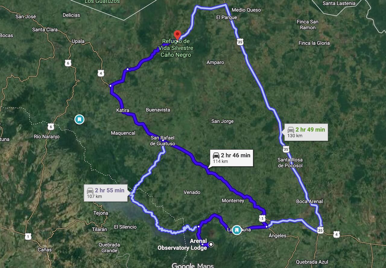After we left La Fortuna it was only a 3 hour drive to Cano Negro but the road in is not for the weak or faint-hearted. We knew it would be bad. Everyone we mentioned to that we were going to Cano Negro asked the same question – which road are you taking? Be prepared for a flat tire even if you drive slow. I was nervous but I was still going to go – we had a reservation after all. The first 90km were nice, paved road and not a lot of traffic. A surprise police stop for a drug search of a car in front of us was a bit strange but then we were very close to the Nicaraguan border so we figured this must be the reason to stop all trafiic both ways and have police dogs sniff around cars. The poor guy in front had to get out, empty pockets etc while they searched his car and everyone else sat and waited patiently while this transpired. Eventually, he was allowed back in his car and we were all waved through.