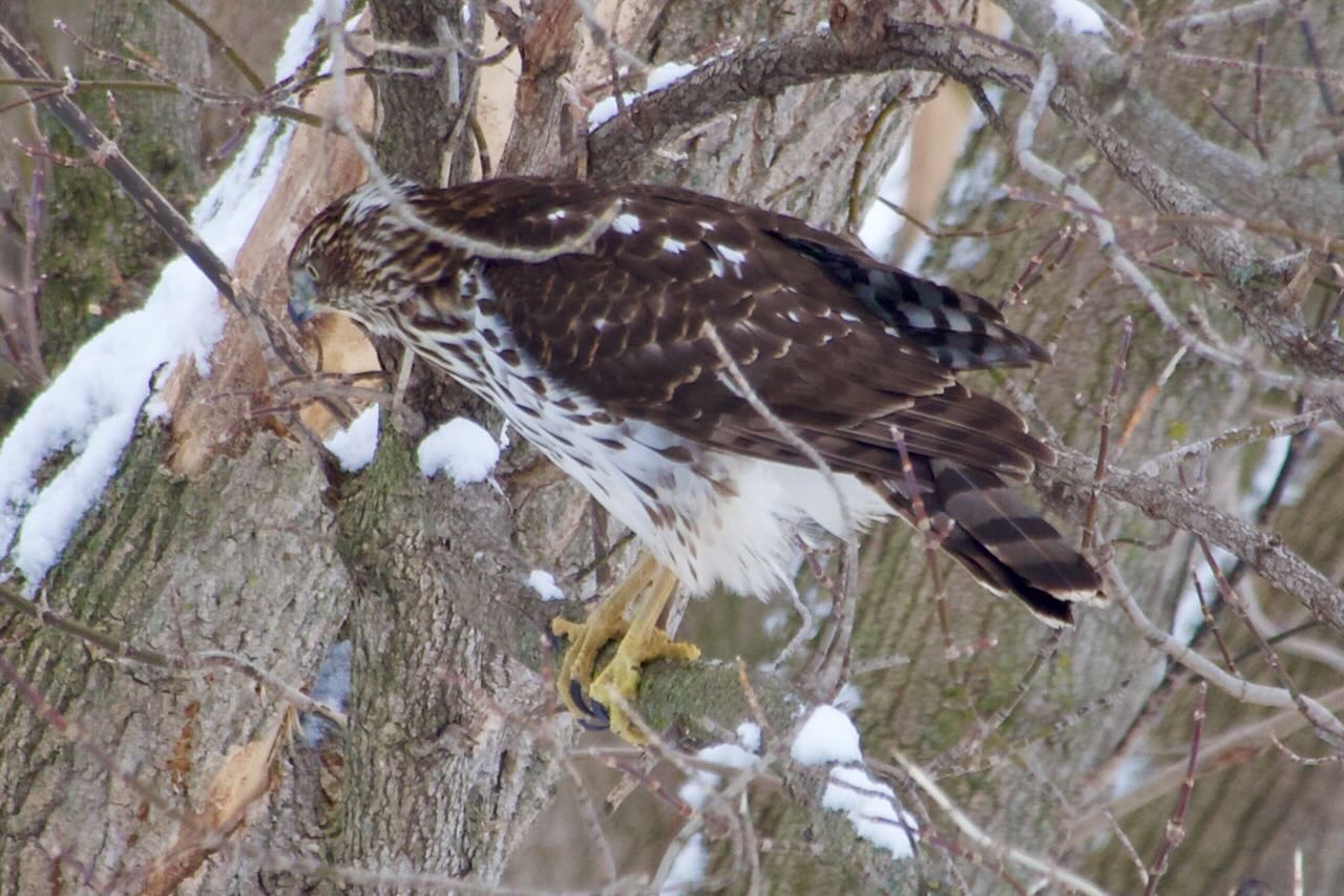 We met up with Angela and Michael the next day to see the celebrity Virginia Rail at F.W.R. Dickson and had quick looks, but no pictures as it scurried out to grab a peanut we had just brought to help it through the continuing cold. We then headed to Brant Park but only a bit of the main road was plowed and it was really tough going through the softening deep snow on some of the more popular paths. There were few birds and no owls and as we headed out a small snowstorm arrived so we opted to call it a day and head out for dinner.