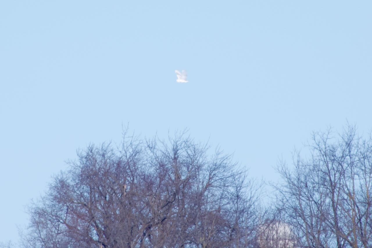 I couldn’t let it go. Something about it just did not seem like a lump should be there and the colouring was more white than the blue-white of snow. I insisted we get out the scope and IT WAS A SNOWY OWL – a beautiful Male, pure white.