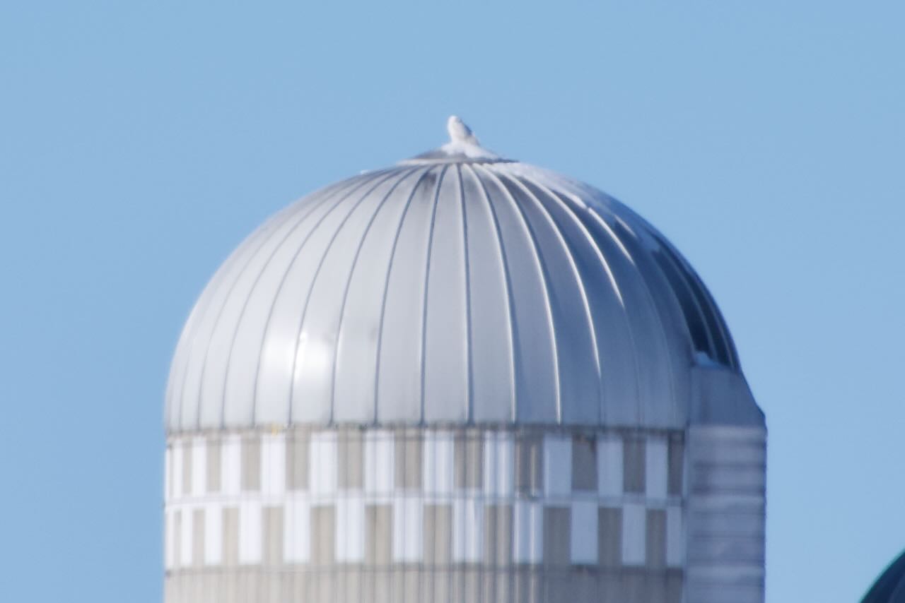I called Bob and he headed to where we were. It was so far back in the field but it was our first Snowy this year and we sure were not disturbing it. Bob had family with him and they had nice views in the scope. We got back in our car and drove a bit more and then headed a bit further north where other owls had been reported. Turning onto another gravel road a car was pulled over with a birder out of the car so we pulled over. He had 2 Snowies, one female on a silo and a male in the tree line. A Rough-legged Hawk flew past at a distance. The Owls were also quite a distance away but we got out and got the scope out and suddenly cars were stopping all over and I had a line-up at the scope for people to view the owls. It was bitter cold but I love sharing those moments with people that are thrilled and excited to see something for the first time. They are always amazed at how close the bird is in the scope. We finally moved on as did the owls and drove up a bit further to see our 4th Snowy of the day up on another silo at the next crossroad. A fun-filled birding day.