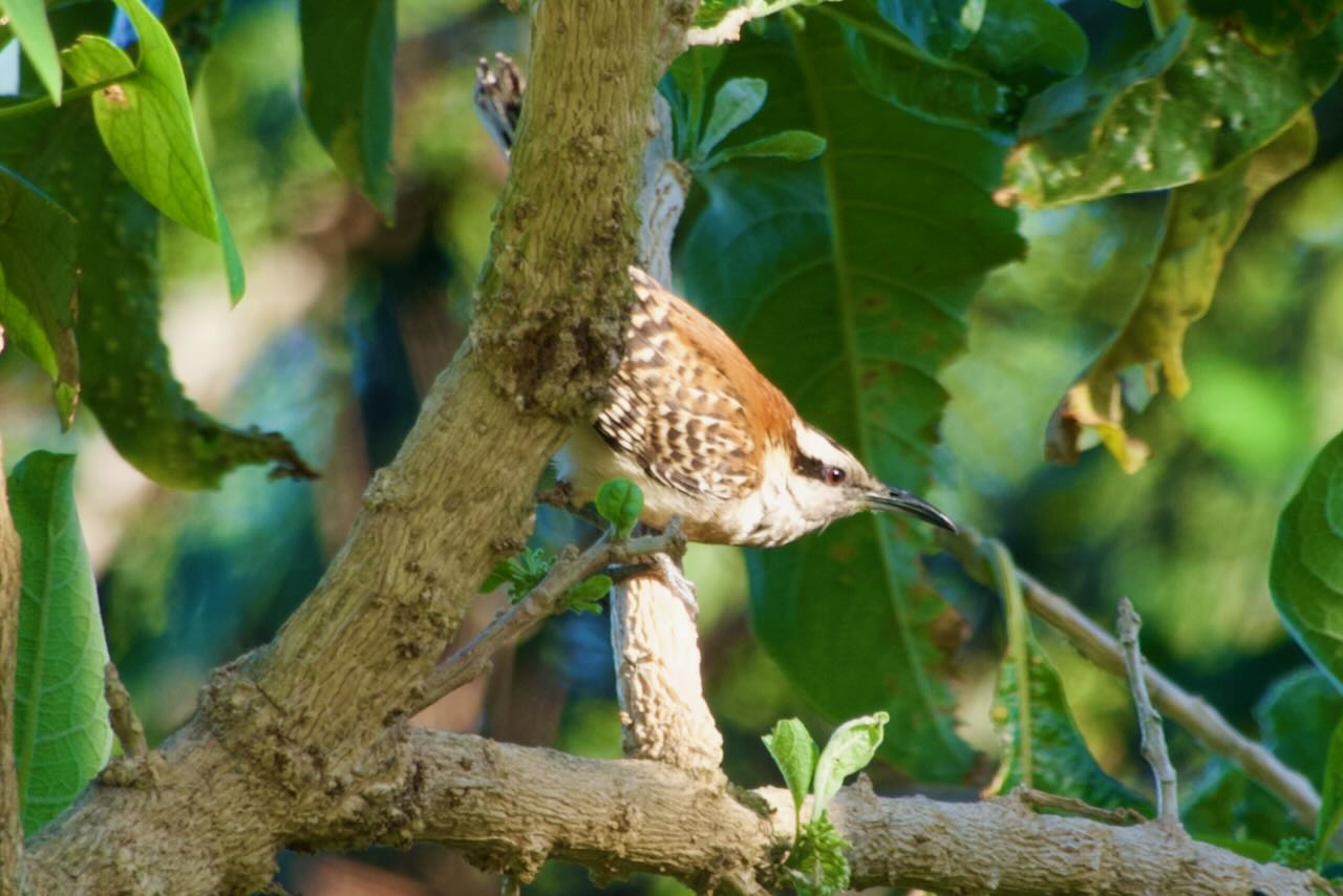 We quickly had lifer Red-billed Pigeon, Social Flycatcher, Melodious Blackbird, Rufous-backed Wren, Crimson-fronted Parakeet, White-fronted Amazon, Hoffmann’s Woodpecker, Cabanis’s Wren, Rufous-tailed Hummingbird and Gray-headed Chachalaca. The bird I had really hoped to see was a Mottled Owl that roosts in the huge bamboo near the pool but despite usually being seen, it was not found that first day. We heard a very sweet song in one corner of the garden, Merlin ID’d it as a Rufous-browed Peppershrike. We listened and kept listening trying to zero in on where the bird was, Heather and Greg from Guelph joined us. Eventually Heather saw it in a different tree but the rest of us did not get on it as it quickly disappeared. We added it to our lifer list because we had actively heard it singing for a significant amount of time and I hope that we will get a chance to see it.