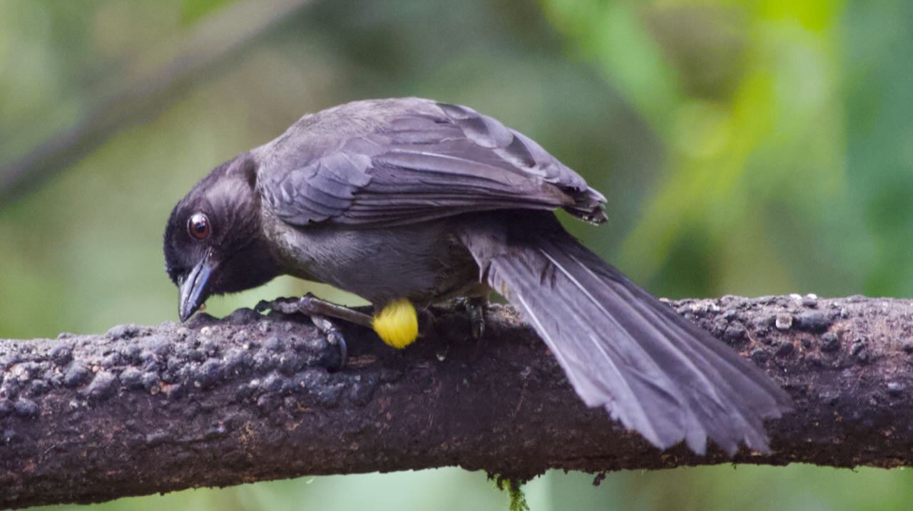 We birded along the forest trail for a bit and then made our way back to our room for a quick beer but were interrupted by seeing birds in the garden so ran down the paths to see them better and take pictures. The beer sat for another hour while we followed the many birds until a light rain shower chased us back to our porch. We added lifers with Sooty-capped Chlorospringus, Large-footed Finch, Black-billed Nightingale Thrush, the Black-and-Yellow and Long-tailed Silky-flycatchers, and a favourite, the Slaty Flowerpiercer. This bird uses a hook on its beak to pierce the flower at its base to suck the nectar out of the flower.