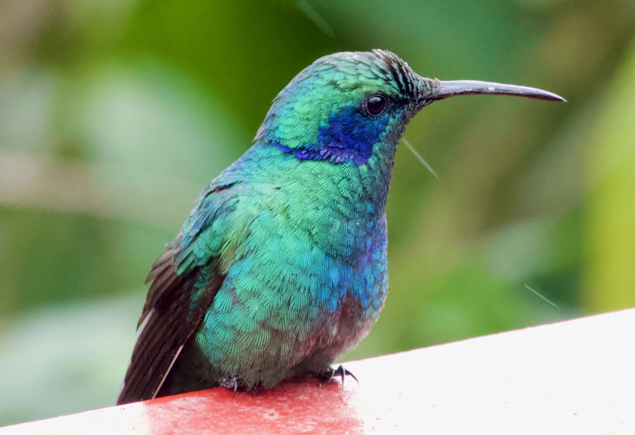 We settled in and then headed out to the hummingbird deck for the event of a lifetime. The birds were whizzing past, almost landing on us, circling around us and allowed us to be inches from them without stopping their feeding. I took way too many videos and Jerry took many, many pictures. The Fiery-throated Hummingbird was fantastic to see with its colours showing.