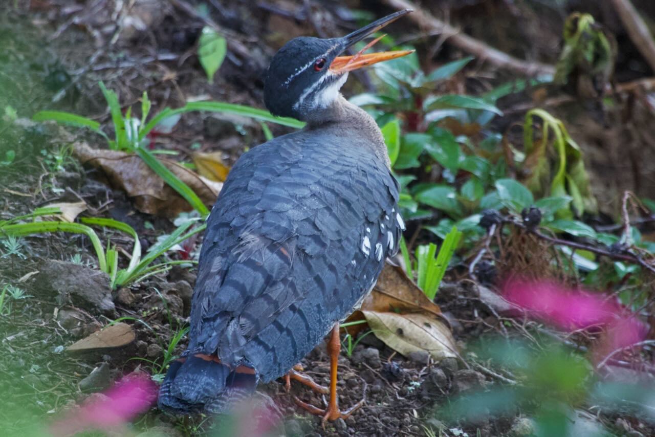 We took another walk back to a small pond for the bird we really wanted to see, the Sunbittern, a heron with a gorgeous wing pattern in flight. We had checked the pond when we first went out but nothing was there so we went back just before dusk. Jerry saw something move into a small canal past the pond but thought it was a Green Heron. I thought nothing of it and we continued to hang there for another 20 minutes adding a Sulpher-bellied Flycatcher to our life list. We decided with the light fading to head to dinner when Jerry saw something further down the canal. A closer look revealed it to be the Sunbittern!! It was the “Green Heron’ he had seen and we almost missed it. Crazy how silly we can be sometimes – we really should have checked it the first time he saw it. Anyway, we at least get to add it to the list and hopefully we will get good photos of it over the next two days. The photo everyone wants is with its wings spread.