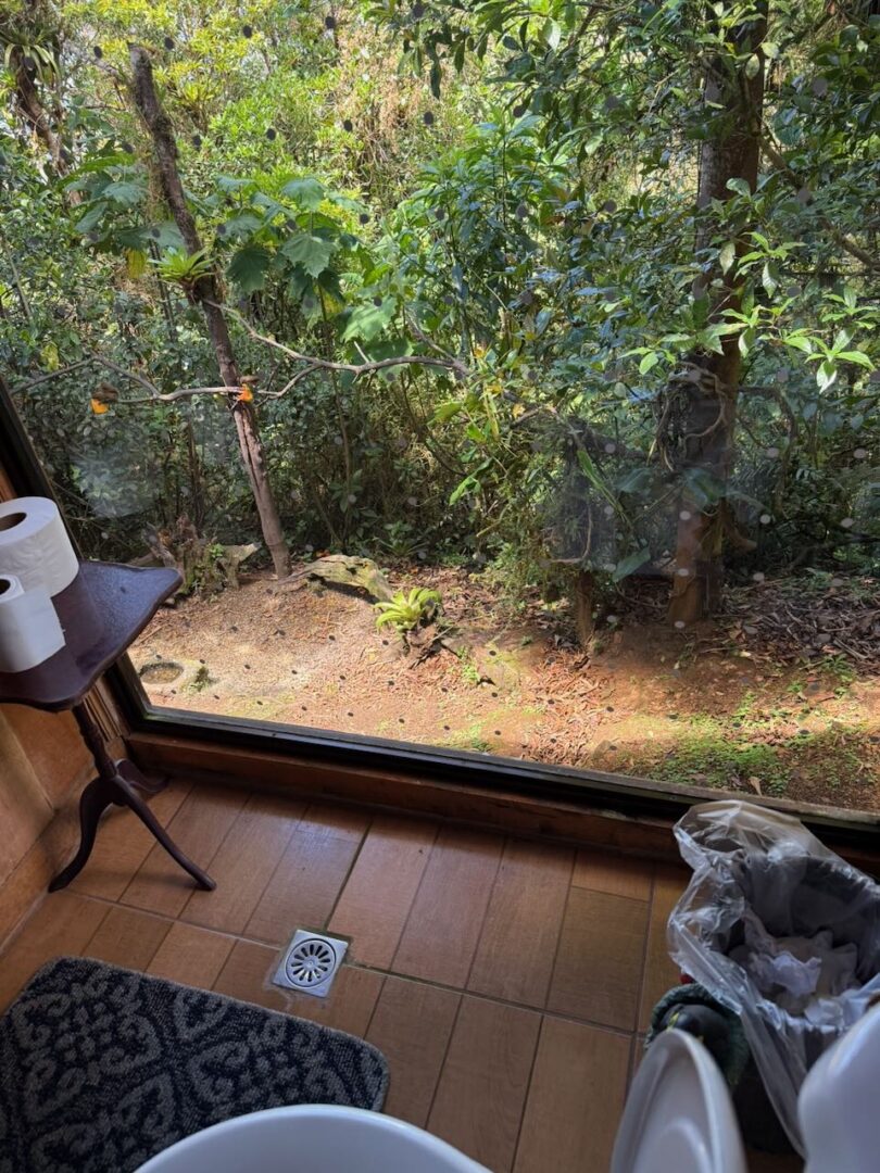 We left Hotel Bougainvillea after breakfast and headed for our first birding stop of the trip – Casa Dowii. This little restaurant/bird-viewing spot is known for its great views of Tanagers and the Buffy- crowned Wood Partridge and Buff-fronted Wood Quail. The distance was only 52km but it took 1.5 hrs because of the mountainous, twisty roads. Generally we were traveling at 50-60kms. We arrived at Casa Dowii as another group was leaving so we had the whole viewing area to ourselves. You pay $20/person to see the birds whether they arrive or not. They even had a wall of windows in the bathroom so you would not miss a bird while on the toilet! Of course I also must mention the “weird” thing about bathroom etiquette in Costa Rica. No toilet paper in the toilet! It is deposited in a covered bin beside the toilet. A bit of getting used to as we are programmed to drop it in the toilet and a bit of an “eewwww” factor but like anything else you get used to it. Jerry has suggested we implement it at home to “save” our septic system but I’m saying NO very strongly on that one.