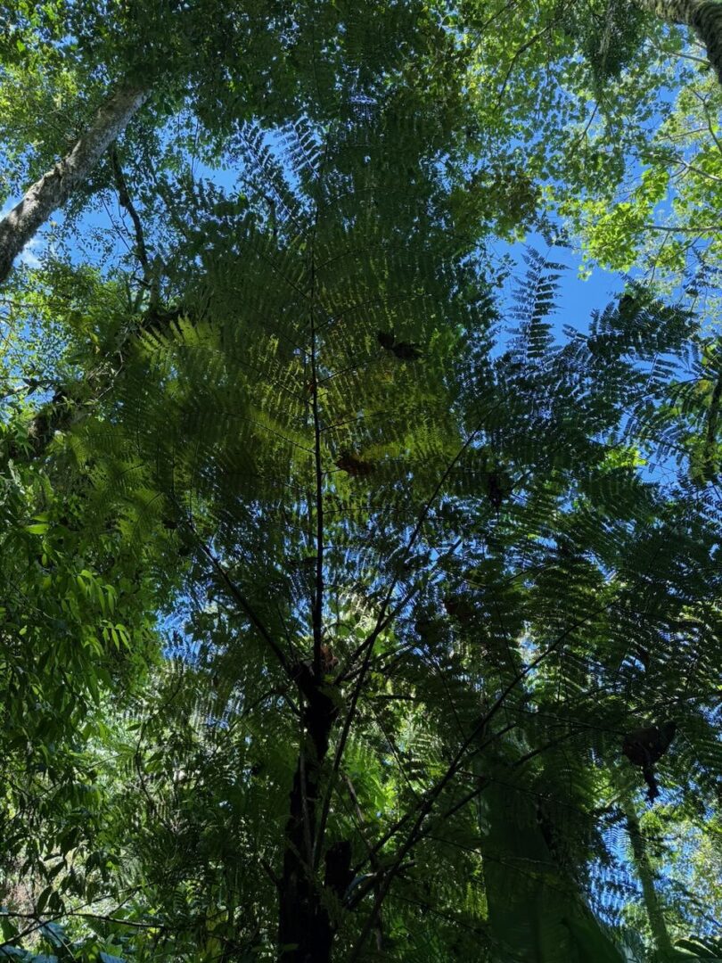 We spent the next 3 hours walking the roads again and then taking a few trails into the forest. We scanned trees high and low and listened for calls that Merlin alerted us to and we found a number of lifers on our own with each one giving us a thrill. Crimson Collared Tanager, Bay-headed Tanager, Golden-hooded Tanager, Red-faced Spinytail were awesome and we got better looks at other birds we had already seen. Jerry attempted pictures in between the leaves or over great distances but it was not easy. It was cooler in the forest and very hot and humid out on the road.