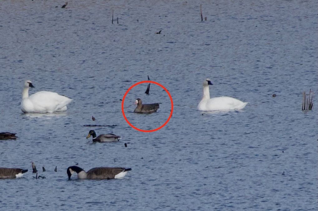 Wednesday there was a report of a Greater White-fronted Goose 10 minutes away at Bannister Lake. We listed this species way back in January but had a really horrible picture as they were across the bay at Rondeau. We headed out first thing and easily found the goose but quite a way out in the lake. Jerry took some pictures that are slightly better than our original from January in that you can tell what species it is.