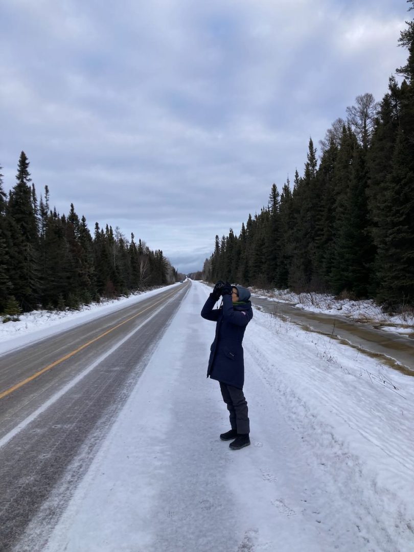 On the last day of the year we headed a bit south to Hilliardton Research Station where we had seen the banding of Boreal and Northern Saw-whet Owls in September. We were hoping to see a Boreal Chickadee or a nice owl but it was pretty quiet. We did get out of our car and walk the roads and had great views of Canada Jay and later a Northern Shrike. I love this kind of birding on a quiet northern road with little traffic, easy to walk and easy to see as birds cross over the road. Animals love to use it too as we saw tracks on both sides of the road of fox or coyote.
