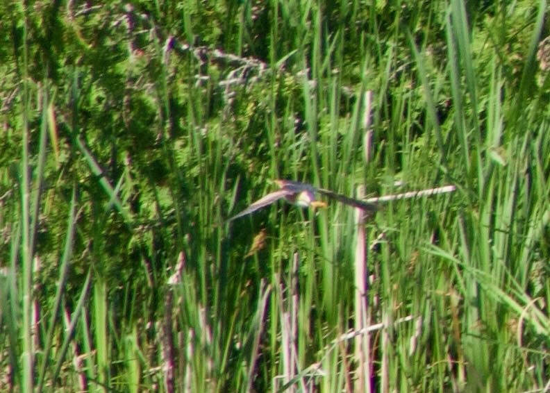 Canada Day we were at Confederation Park in Hamilton to cheer on our our daughter’s family as they ran 1&5K races to raise funds for McMaster Children’s Hospital. We did a bit of a Lake Watch at Van Wagners afterwards to just practise our skills at identifying birds at a distance with the scope. Starting in August we are going to have to spend quite a bit of time at this spot hoping to get Jaegers and rarities coming in. The rest of the week we looked after grandkids and then on Friday headed up north for a weekend with our kids and grandkids at Viamede Resort. We left early Friday and stopped along the way with the goal of seeing and getting a pic of a Least Bittern. We did not see a Bittern at our first stop at the Darlington Waterfront Trail but further north we stopped at Duoro Park in Peterborough. We saw nothing in the actual park but decided to check the river from the road bridge beside the park. Jerry was taking some pictures of a Green Heron when suddenly a Least Bittern flew almost eye level over the bridge. It was only seconds before we got across the road but the bird had disappeared on the other side. I had a fantastic view of it and Jerry missed it. We scouted the area and then decided to go back into the park for a different view of the area we were sure it must have landed in. We scoped for a bit and then it flew up out of the reeds we had been scanning and went down river back to the other side. Jerry managed a crappy shot but we achieved our goal and saw a Least Bittern and got a picture.