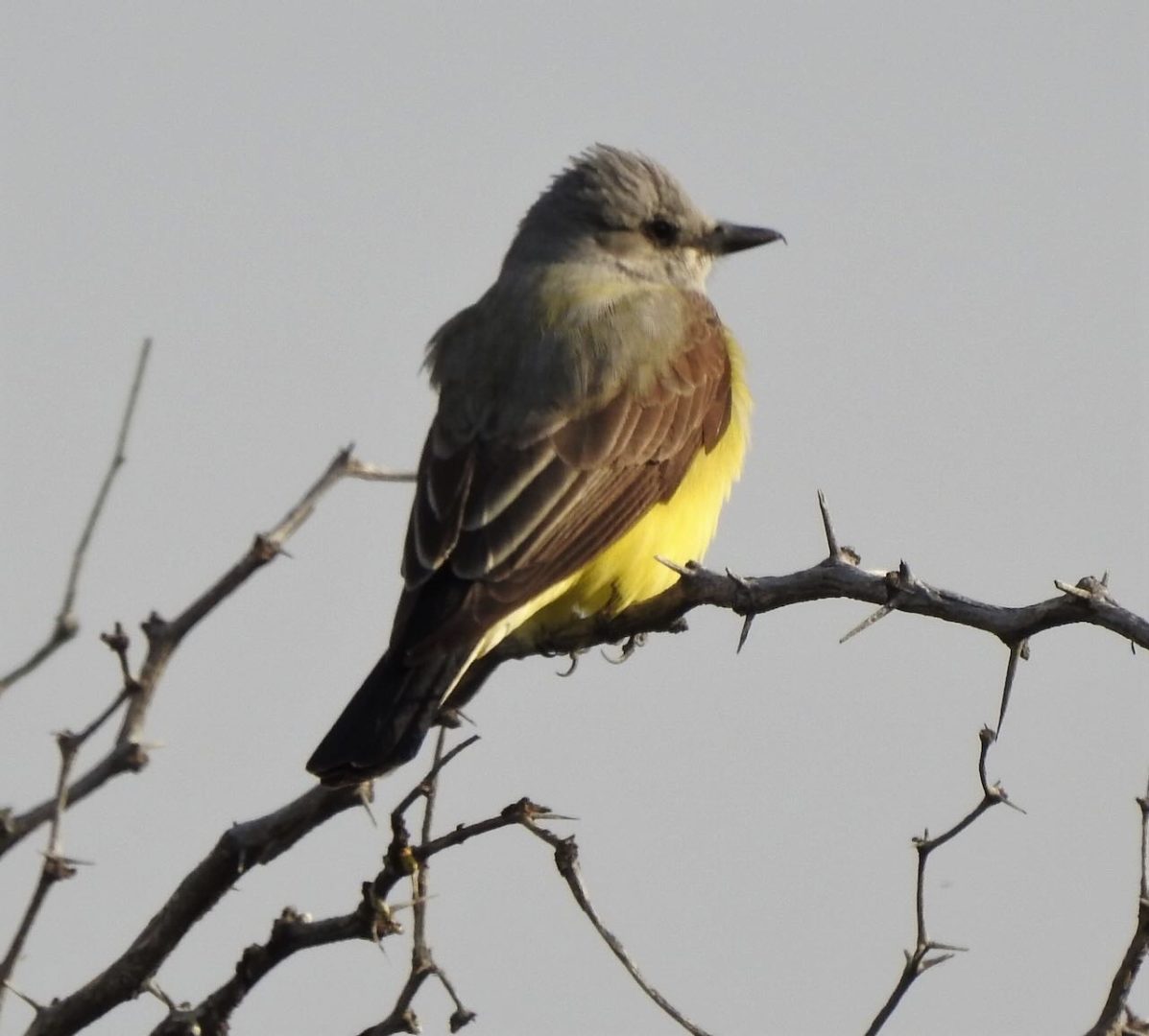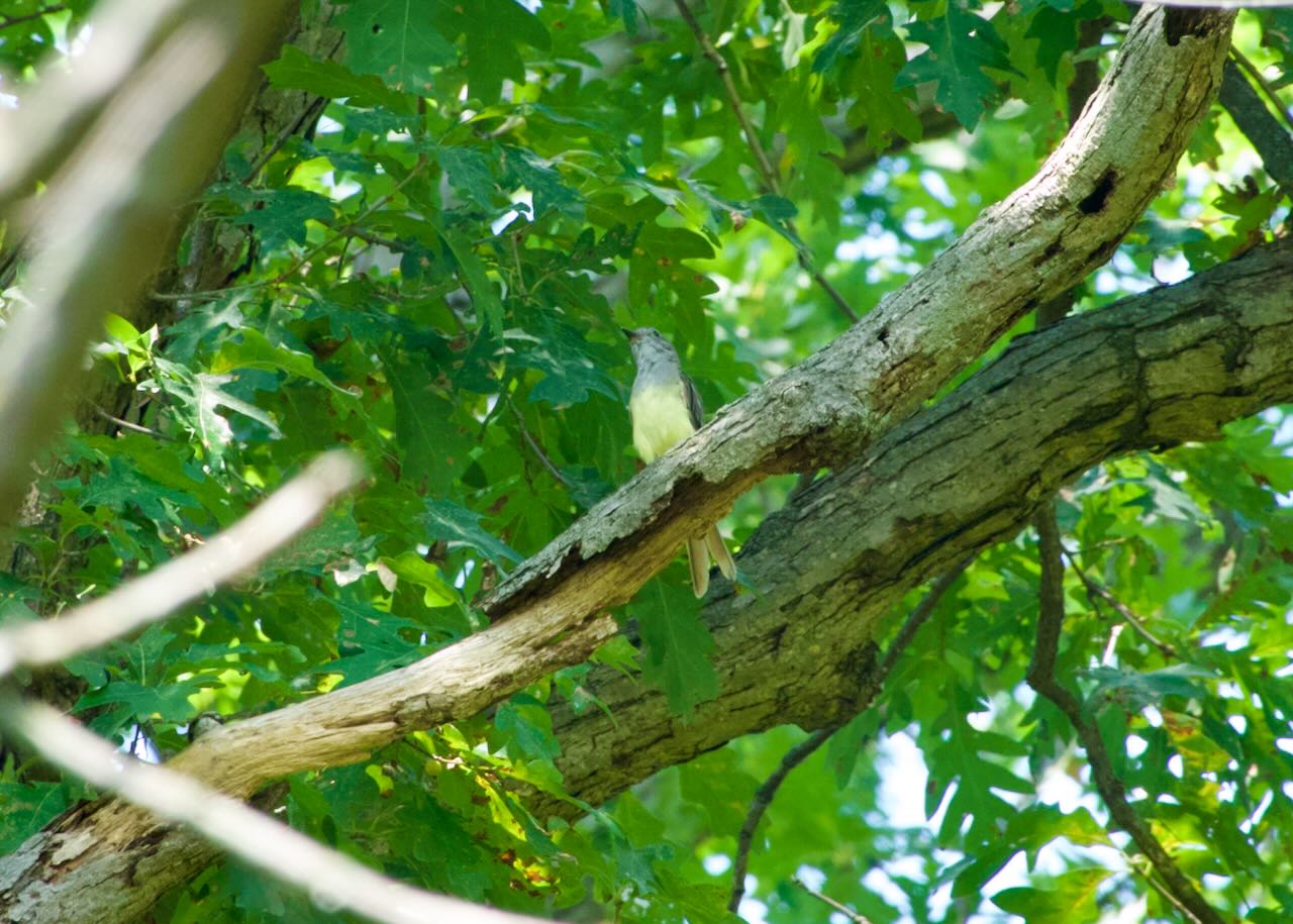 Saturday, we patiently waited at home, itching to bird, but not wanting to make a move in one direction or another. At 10:30 a text from Discord announced a rare Western Kingbird 2.5 hrs west of us and we were in the car by 10:45 heading to the spot between Rondeau and Pelee. We had missed Western Kingbird up in Rainy River where they are most often seen in the summer months so I had been hoping one might end up closer to home. When we arrived, Rick and Mike from Pelee had been looking for a few hours without re-finding the bird. That was not good news. It was hot, humid and Jerry had forgotten his hat in the rush to leave. I gave him mine (he has had skin cancer a few times and needs to keep his face covered) and we looped the short 2km trail a few times hoping to see the bird. As the heat increased I started hanging back in the shade while Jerry, in the hat, moved further along the path. Suddenly a text from him, “I got it”. I ran along the path realizing as I ran that I went the long way to where he was and arrived gasping for breath and tried to get my bins on a bird he was pointing out. The bird was in trees, partially obscured. It had the yellow belly, a grayish head. It looked good. I sent a quick text that we had found it and then we got clearer looks at the bird and realized it was a Great Crested Flycatcher not the Western Kingbird. UGGGGH!