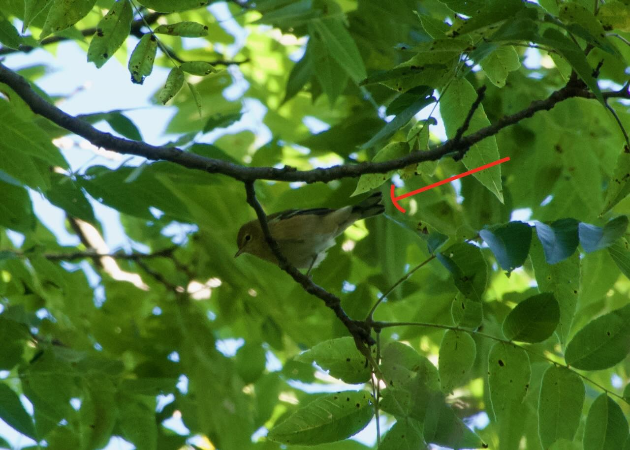 Tuesday we were not getting back into our car for hours so we birded 10 minutes from home to get back our “zen”. We found some early fall warblers at Cavan Flats and spent a lot of time trying to figure them out from seeing small pieces of the birds high up in the trees and hidden by the full leaves. Fall is a difficult time to bird. Most birds are no longer singing, the leaves are still on the trees, the birds are in their fall plumage which is duller and more difficult to figure out. But, we love trying to decipher the clues, that is, until the neck pain gets too intense! There are lots of curses as you just about get the bird and it is gone, as well as delight when you figure out one of them. One of the things we rely on especially in the fall is the under tail pattern of warblers. Each are unique to the species and combined with the amount of colour on the under view often is all you need for an identification. While the birds below show more than the tail there are instances where we make the ID based on just seeing that tail and underside. Cool huh?