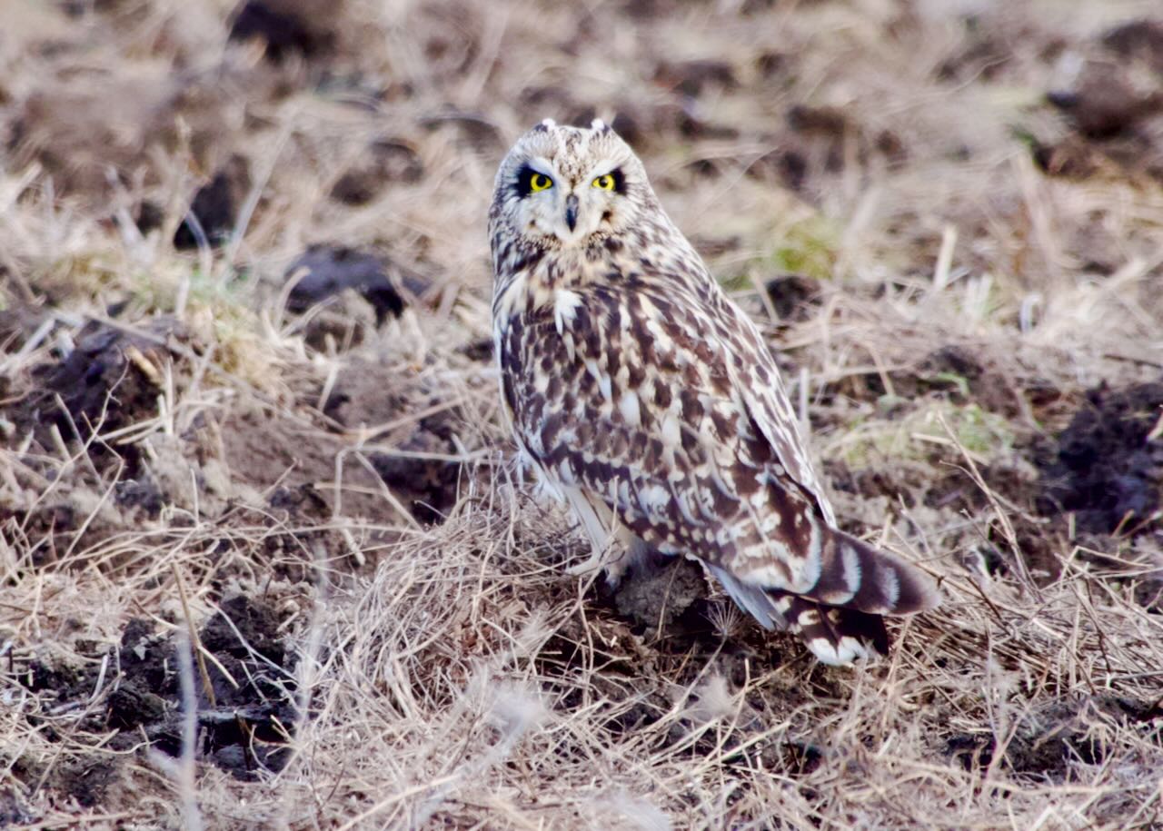 We then stopped to chat with a birder that had seen the Short-eared Owl the night before and got the exact location and Jude arrived, having gotten the Snowy and decided to join us in the Short-eared hunt. We headed down to show him the Shrike and he got pics of that. Jude has been going full speed this year and the Snowy and Shrike were year birds for him. He says he is not doing a Big Year but I think he will end up doing one by default. He is already in the number one spot. We headed over to Watts Pond Road where the owl was seen the last few nights and waited. I was nervous about where we were parked, it didn’t give very good “long” views and the evening before it was seen farther down the road. We drove down and back and then around 5:20 we drove down again. On the way back up the road we stopped at an open area near the beginning of a large berm. Jerry said wait here, it has good views and 30 seconds later a Short-eared Owl flew right out and near our car before turning back and moving through the field. I quickly honked for the guys further down the road and they moved down to see it. Jerry got pics, I watched the owl and a few more people arrived. We have always known there were Short-eared Owls in Brant County but we have never had consistent reports from one location. Perhaps this area might become that spot where they are reliable each winter.