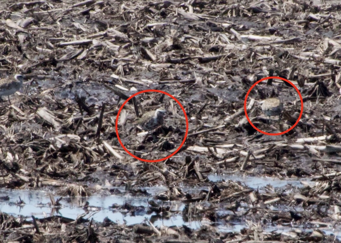 There was a nice movement of Broad-wing Hawks through Hamilton later in the day but we had already headed to Jerry’s mom’s for dinner and missed them. Tuesday we headed down to Rondeau for the day with sun and warm temperatures in the forecast. We hiked far out the Marsh Trail and heard a Marsh Wren near the very end but did not see it tucked in the bullrushes. We will see lots of these in the next months and should be able to get a photo too. I got a text some American Golden Plovers were in a field in Erieau, 10 minutes away from Rondeau, so we headed there and along with another birder re-found the birds in the flooded field. That is a good bird to get as it is not always reliable at Pelee or later in the year. The views were not the best but Jerry managed a few record shots.
