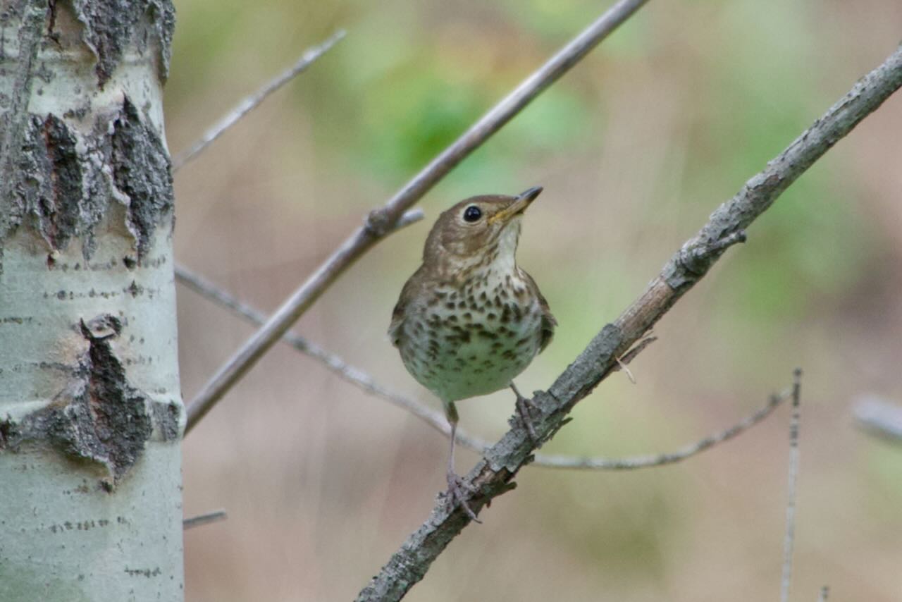 Saturday we moved up into the mountains, heading towards Jasper National Park and stopped at Valmount for our last night in British Columbia. We stopped and hiked at 3 different spots, the first one being North Thompson River Provincial Park. As soon as we got out of the car we heard a Hammond’s Flycatcher singing and Jerry rushed out to track it down. We still needed a picture. And he got it! The trails were pretty and the birds were singing so we spent some time there enjoying the forests and birds.