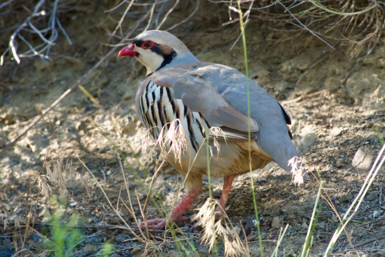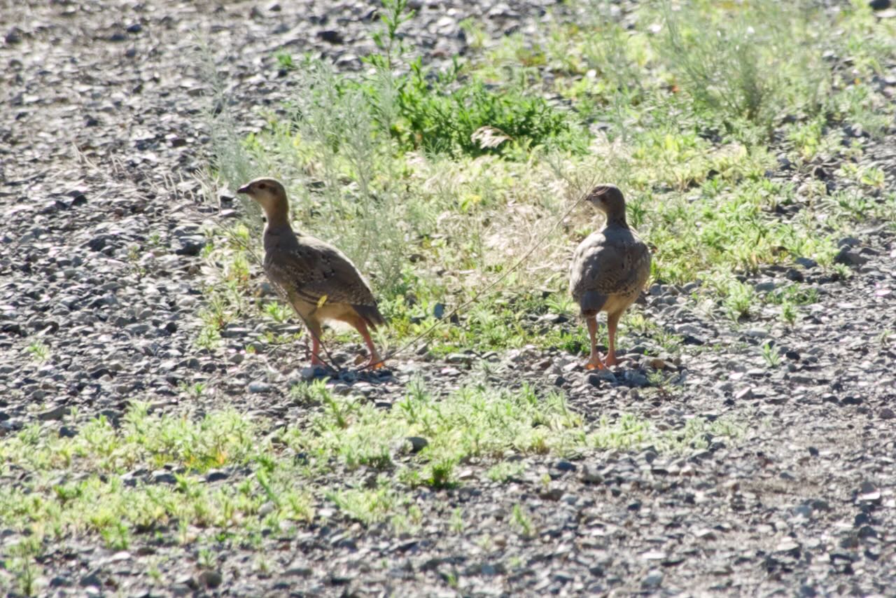 We headed to Kamloops where we hoped to add Chukar to our list. Chukar, a type of quail, are a naturalized species that is only countable in certain locations in Canada. In most locations, including Ontario, they would be considered a released/escaped bird as they are routinely kept by hunters and farmers. The Ebird definition is “Naturalized: Exotic population is self-sustaining, breeding in the wild, persisting for many years, and not maintained through ongoing releases (including vagrants from Naturalized populations). These count in official eBird totals and, where applicable, have been accepted by regional bird records committee(s).” Sun River Estates in Kamloops seems to have a pretty big population that is countable so we headed up into the hills, parked at the base of the cliffs behind the homes, walked a very short distance and saw a family of 8 Chukar at a distance down the road. So easy! It was nice after the frustration over the Grebe to get Chukar immediately. We drove around for a bit and saw a few more adults to get pictures and video.