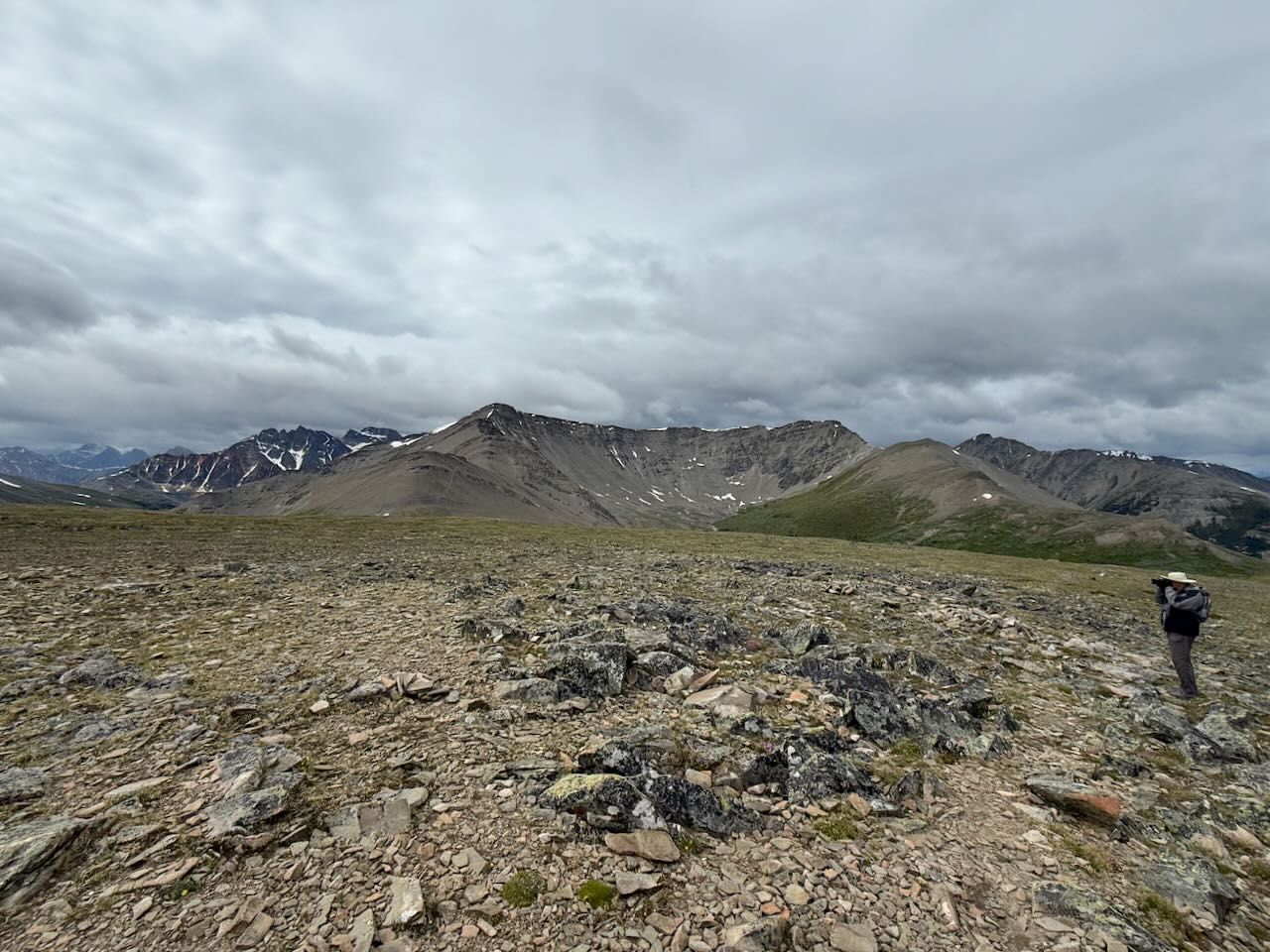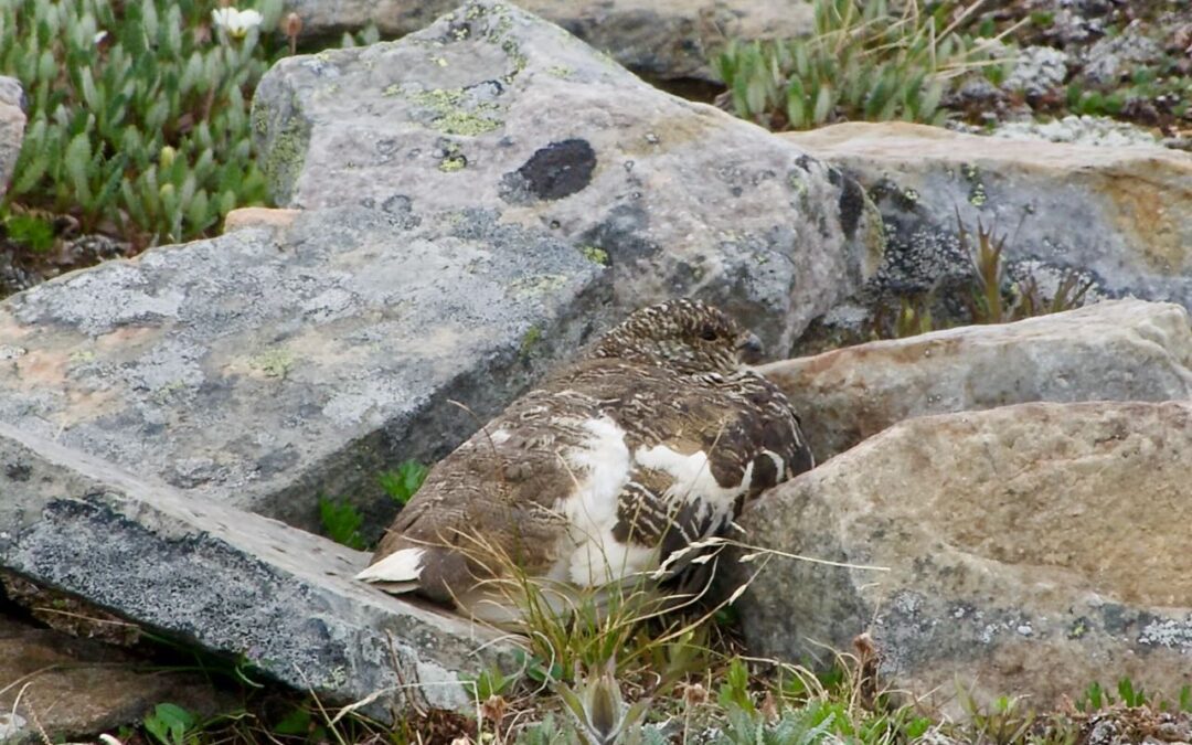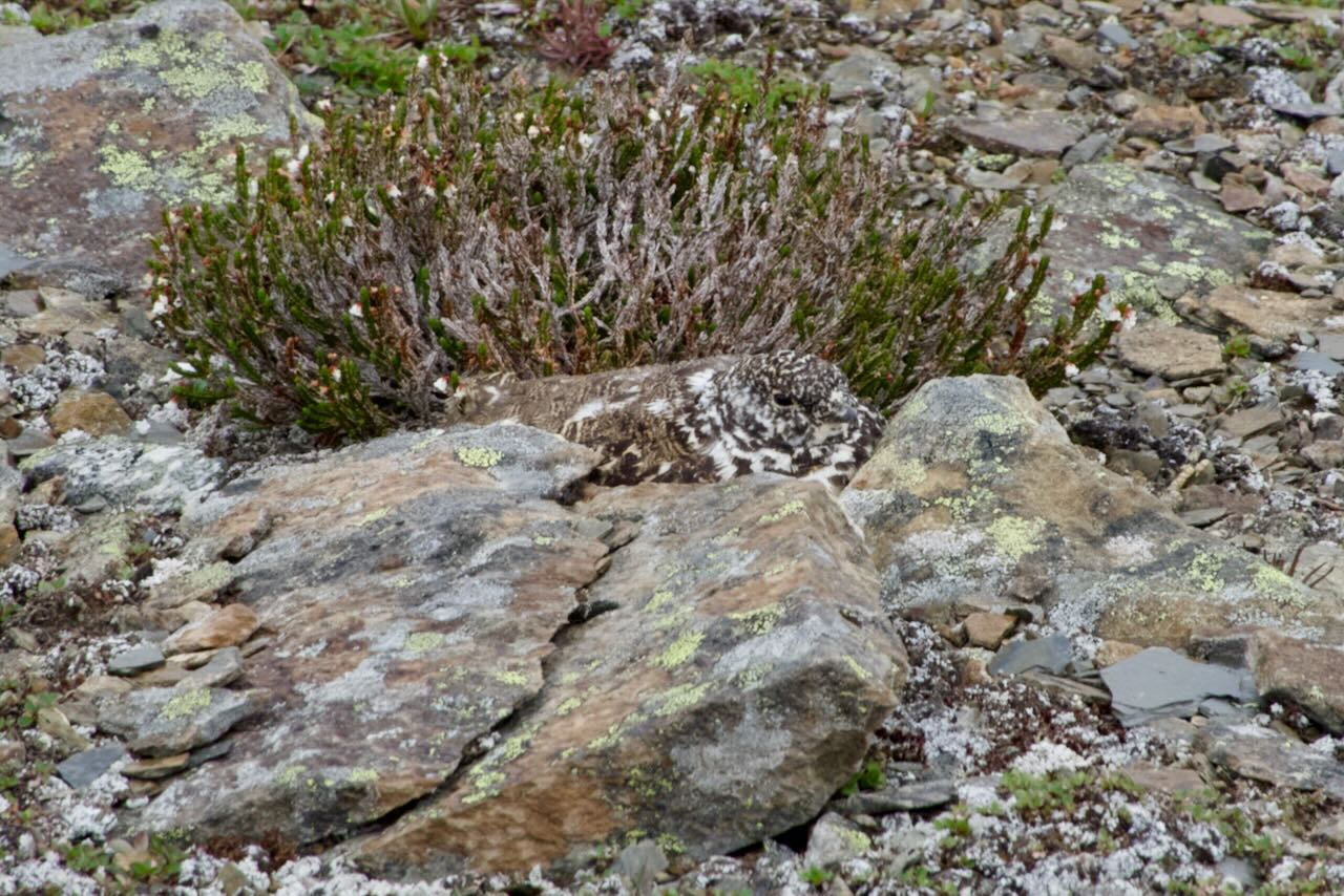 The Ptarmigan is white in the winter but in summer it is a mix of brown/white to blend with the rocks that have a black/green moss on them so it is difficult to see them if they are hunkered down. We checked with our bins every so many feet hoping to see some movement. We made it to the summit, we continued to look and I started looking at lots of black and white rocks. Eventually we started back down and stopped in a “meadow” area that I thought was promising. Still no Ptarmigan. We were now 3 hours in and I was getting a sense of dread. Some tears were shed on my part out of sheer frustration. Would we not get the White-tailed Ptarmigan? Eventually we headed back down to the Skytram building as we had missed our “trip down” and wanted to check with them about the latest trip of the day. Because of the fires last year there are not a lot of people visiting Jasper and that was working in our favour as we could go back down whenever we were ready with the latest trip down at 5:50. We discussed what we wanted to do. By this time we had already done 74 staircases and about 5km of walking in the thin air with only a granola bar and some water. I did not want to give up and have to come up another day. We agreed we would walk back up part way to the meadow area again. I felt strongly that the Ptarmigan would be in that area. The walk back up was grueling and it was starting to rain more. We finally made it to the meadow area, almost at the summit and headed off trail – off trail is not encouraged but also not banned and many people walk all over the top. We walked into an area we had already visited twice. We both were scanning with our bins and Jerry saw movement and then I saw movement. IT HAPPENED! WE HAD OUR WHITE-TAILED PTARMIGAN. I immediately lost where the bird was but saw movement over a bit and found a SECOND ONE! I cannot adequately express the relief and adrenaline of seeing this bird. We took multiple pictures and video. By now the rain was heavier and the clouds were moving in over the mountain but we did not care. We had the bird!