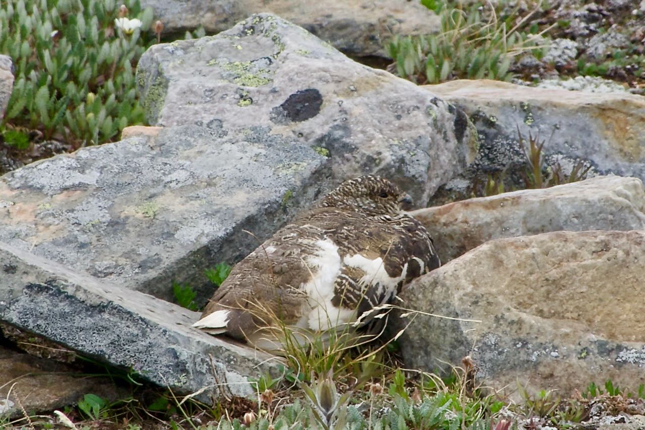 We had booked tickets for the Skytram for Monday but heavy rain was forecast so we opted to get there early Sunday and change our booking. White-tailed Ptarmigan can be only found high in the mountains and the Skytram takes you up near the summit making it one of the “easier” ways to get this bird on your list. I was not keen on taking 8-9hr hikes on other mountains and most people seemed to get the bird off the Skytram with a 1-2 km walk in a few hours. We arrived at the top at 9:30 – took a few minutes to acclimate to the thinner air and then started the climb to the summit. It was about 10C some sun and cloud and we were prepared with extra layers, raincoats and gloves all that came in handy with the wind.